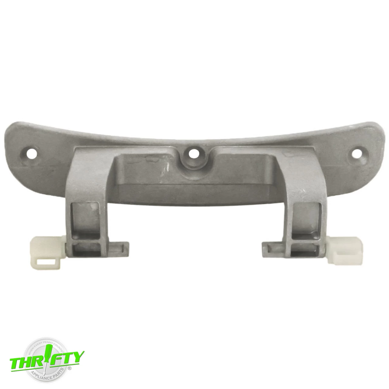 Replacement door hinge used for some Crosley, Electrolux, Frigidaire, and Kenmore washer models.