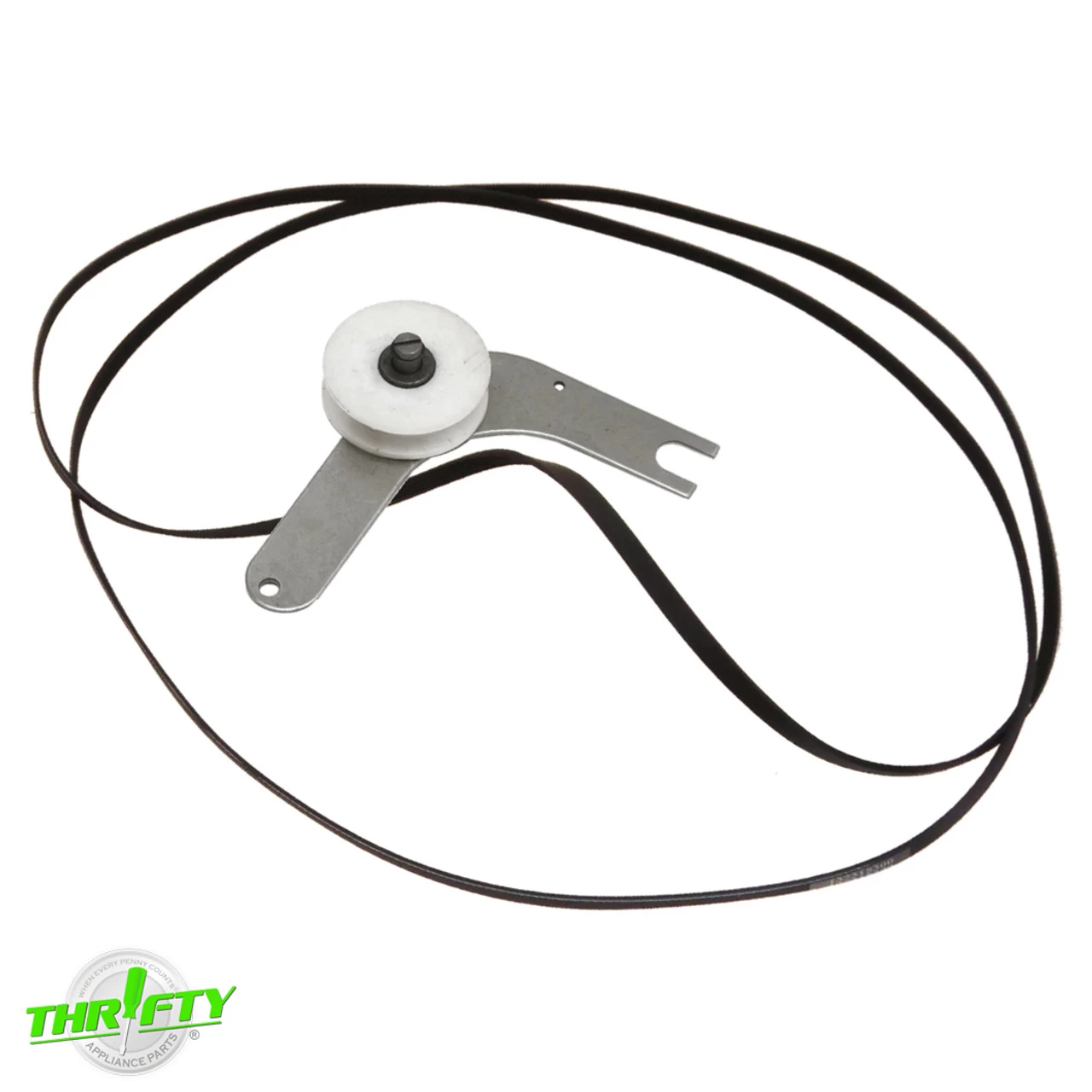 Replacement idler pulley and drum belt used for some Crosley, Electrolux, Frigidaire, and White-Westinghouse dryer models.