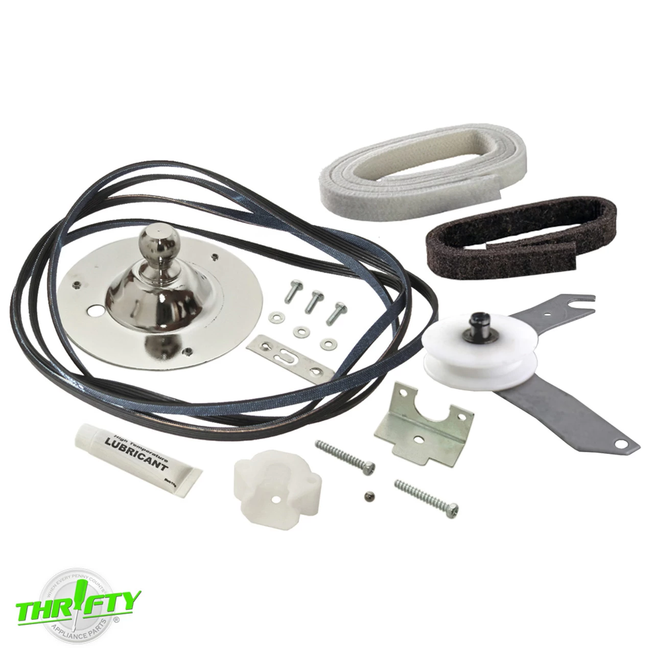 - Includes 131777700 ball shaft replacement, (3) 131168200 ball shaft screw replacements, (3) washers, (1) 131825900 Teflon shaft bearing replacement, (1) 131724301 shaft bearing bracket replacement, (2) 131205400 shaft bracket screw replacements, (1) 5303281019 ball bearing replacement, (1) 5303281020 ball bearing clip replacement, (1) high-temperature lubricant, (1) 4-Rib Belt, (1) Upper Felt Seal, (1) Lower Felt Seal, (2) Tubes of High Temperature Adhesive, (1) Idler Arm, Pulley, and Shaft Assembly.