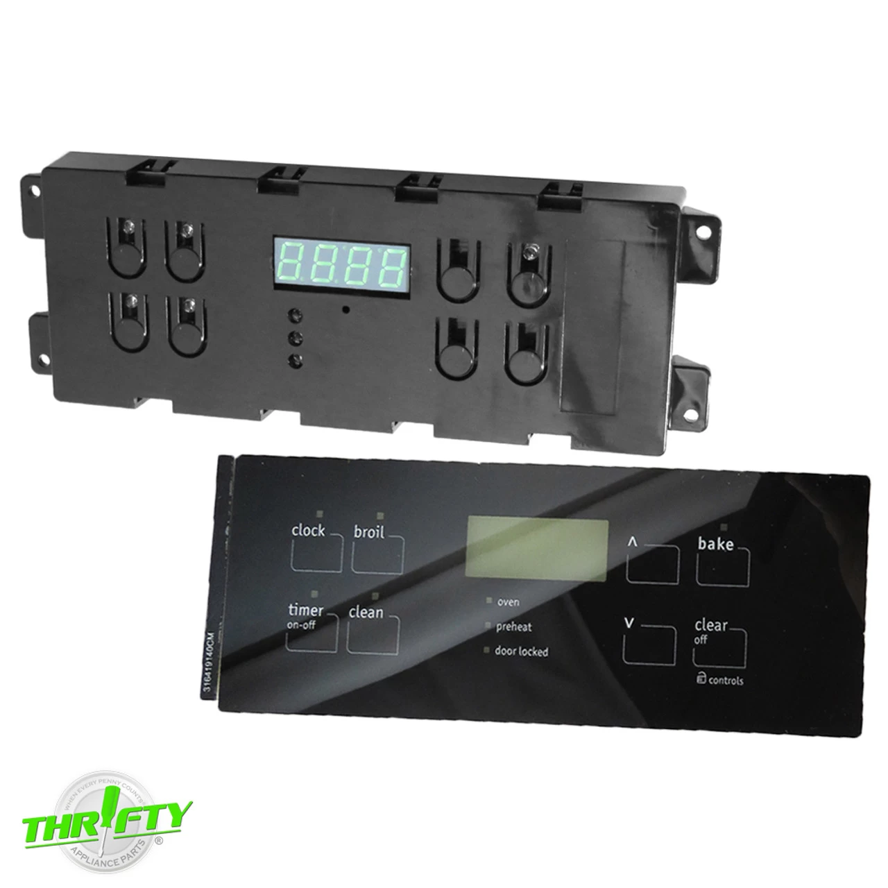 Replacement control board and overlay set used for some Crosley, Frigidaire, Gibson, Kelvinator, Tappan, and White-Westinghouse range models.
