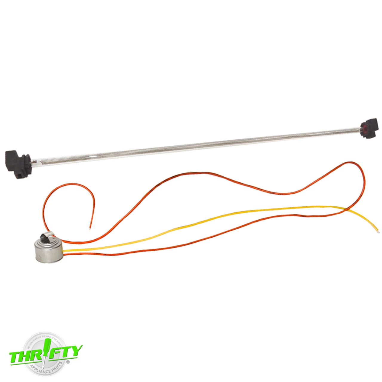 Replacement defrost heater and thermostat used for some GE, Hotpoint,Ā and RCAĀ refrigerator models.